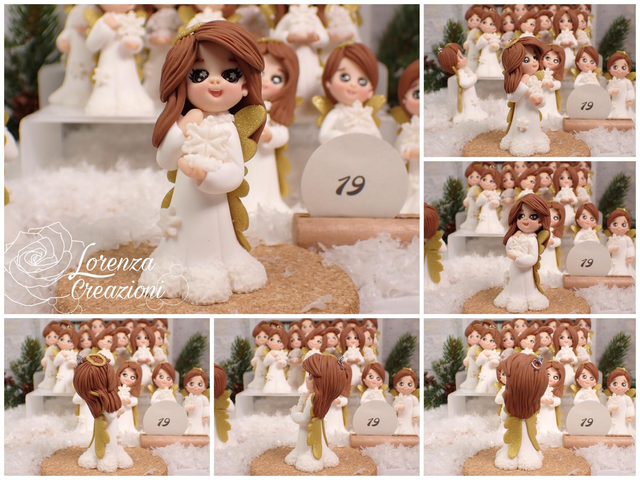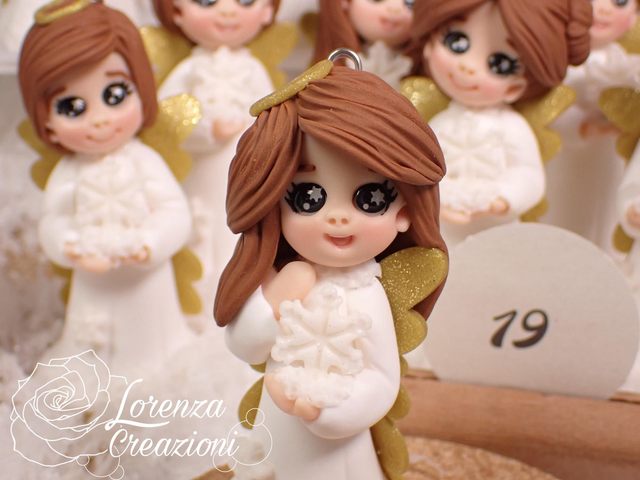 Angioletto del Natale 2025 n°19 con fiocco di neve, modellato e dipinto a mano. Pezzo unico, da collezione, firmato e numerato. Made in Italy, made in Treviso, Lorenza Creazioni.