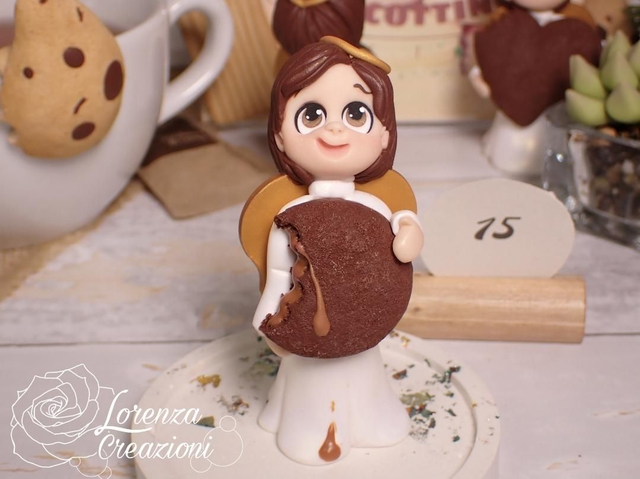 Angioletto goloso con biscotto ripieno al cioccolato artigianale, pezzo unico.