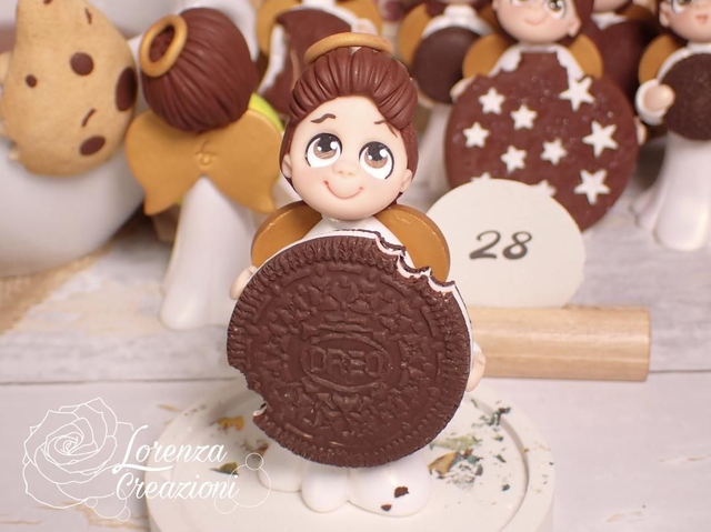 Angioletto goloso con biscotto al cioccolato artigianale, pezzo unico.