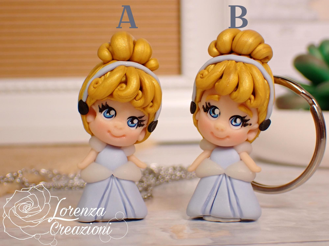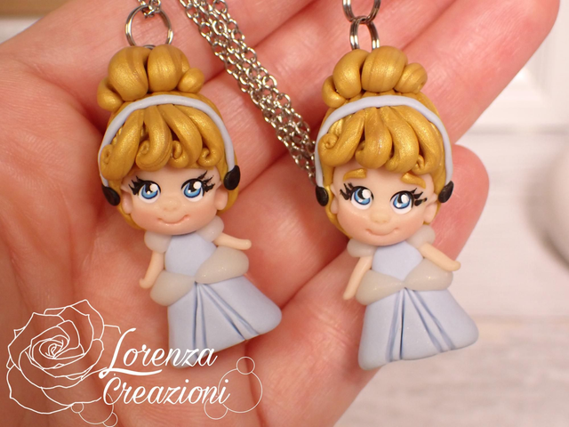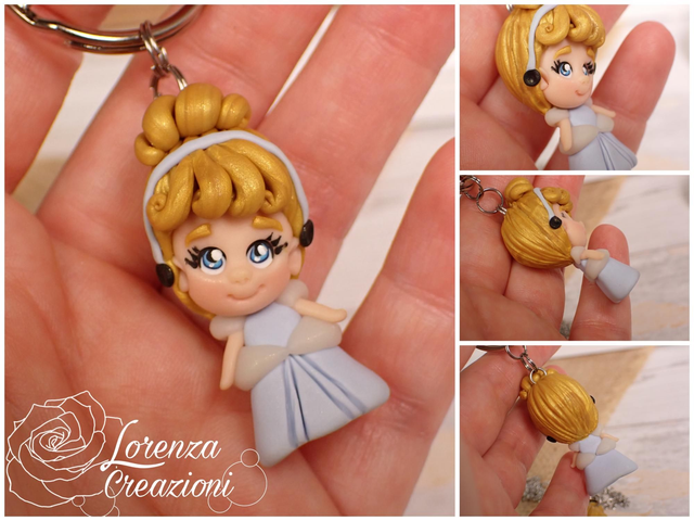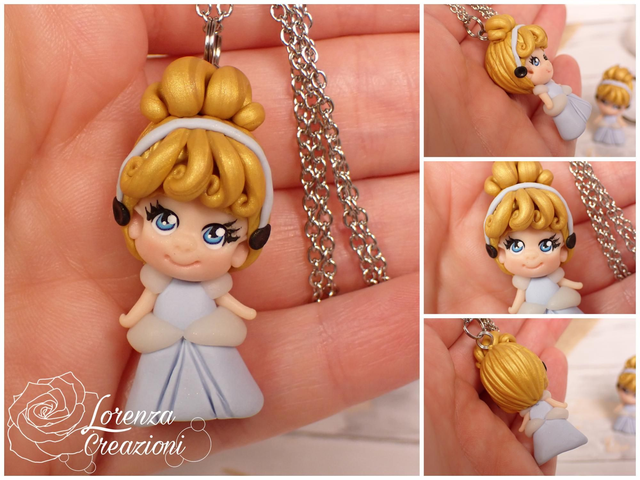 Collana e/o portachiavi modellato a mano artigianalmente, principessa Cenerentola, Cinderella
