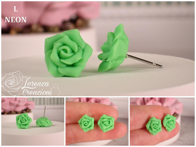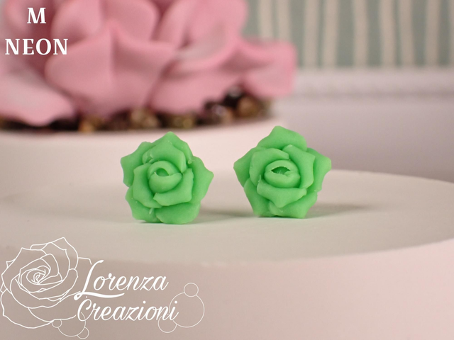 Orecchini a lobo rose verde neon