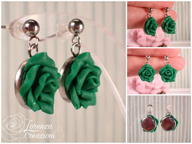 Orecchini pendenti rose verdi glitterate