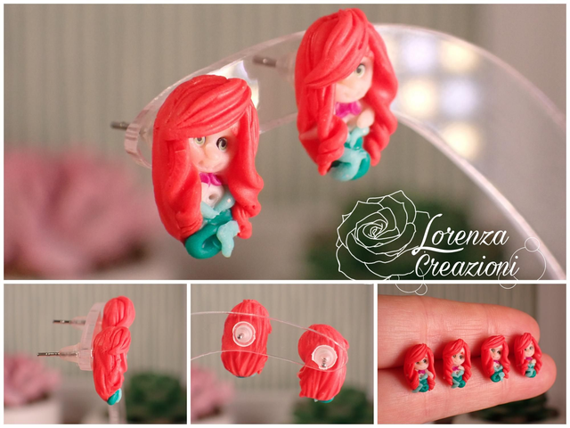 Orecchino a lobo modellato a mano artigianalmente, principessa Ariel, la sirenetta