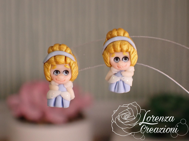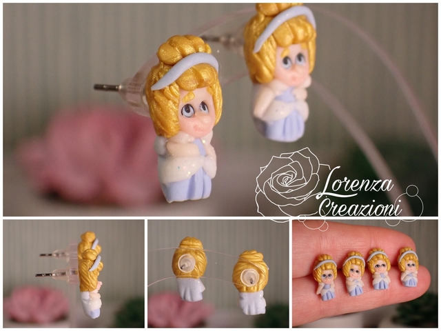 Orecchino a lobo modellato a mano artigianalmente, principessa Cenerentola, Cinderella