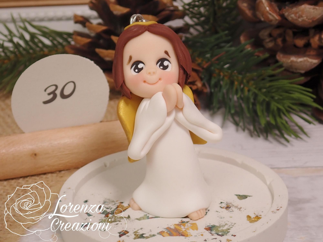 Ogni angelo ha la sua espressione angelica e un pochino monella, vestito bianco, pettinatura preferita, ali dorate. Numerati sotto.