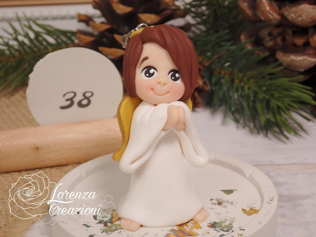 Ogni angelo ha la sua espressione angelica e un pochino monella, vestito bianco, pettinatura preferita, ali dorate. Numerati sotto.