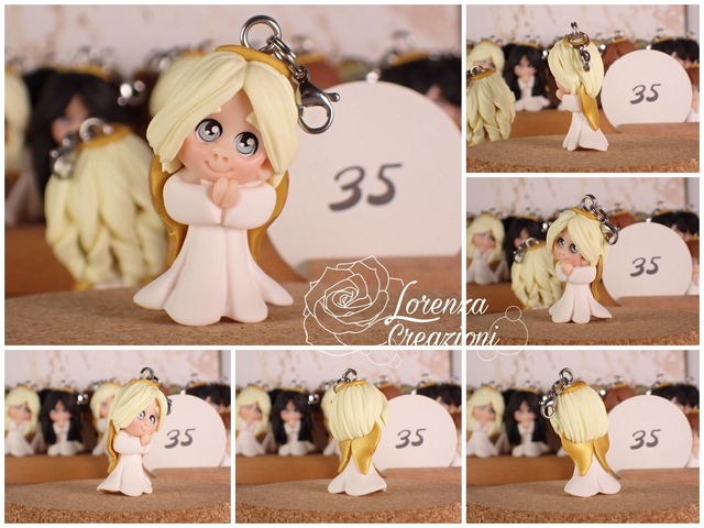 Angioletto custode tascabile n. 35 Portachiavi o charm, artigianale, pezzo unico. Modellato a mano argilla polimerica, made in Italy.