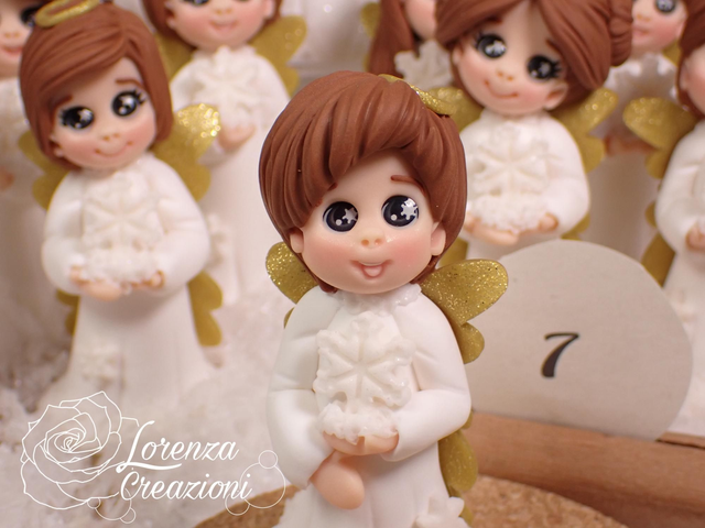 Angioletto del Natale 2025 n° 07 con fiocco di neve, modellato e dipinto a mano. Pezzo unico, da collezione, firmato e numerato. Made in Italy, made in Treviso, Lorenza Creazioni.