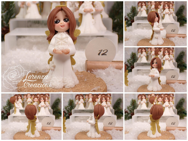 Angioletto del Natale 2025 n°12 con fiocco di neve, modellato e dipinto a mano. Pezzo unico, da collezione, firmato e numerato. Made in Italy, made in Treviso, Lorenza Creazioni.