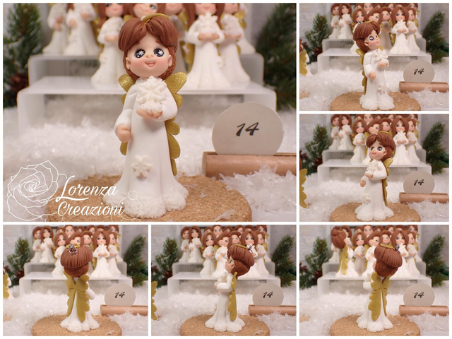 Angioletto del Natale 2025 n°14 con fiocco di neve, modellato e dipinto a mano. Pezzo unico, da collezione, firmato e numerato. Made in Italy, made in Treviso, Lorenza Creazioni.