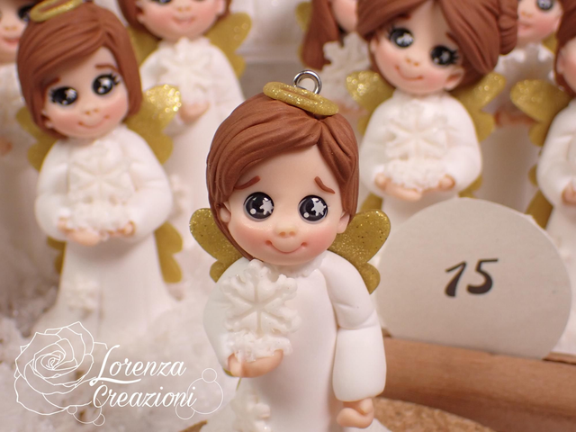 Angioletto del Natale 2025 n°15 con fiocco di neve, modellato e dipinto a mano. Pezzo unico, da collezione, firmato e numerato. Made in Italy, made in Treviso, Lorenza Creazioni.