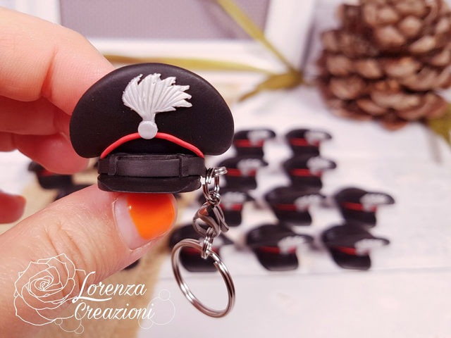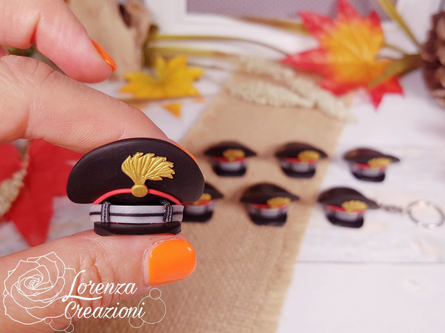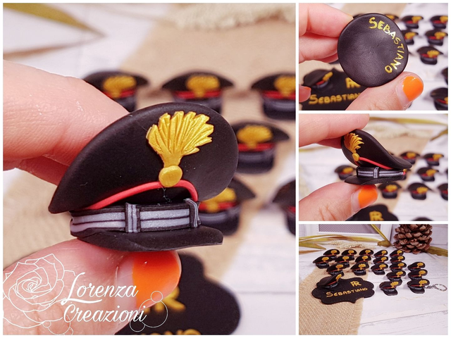 Cappello carabiniere uomo, modellato a mano in argilla polimerica, fimo, personalizzato, made in Italy