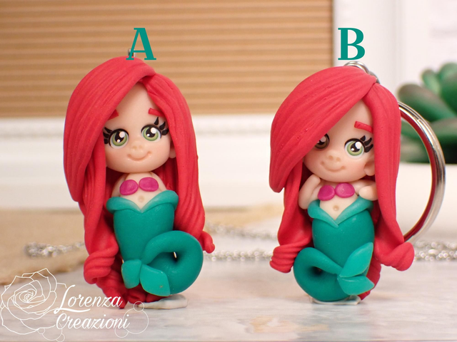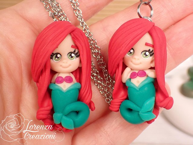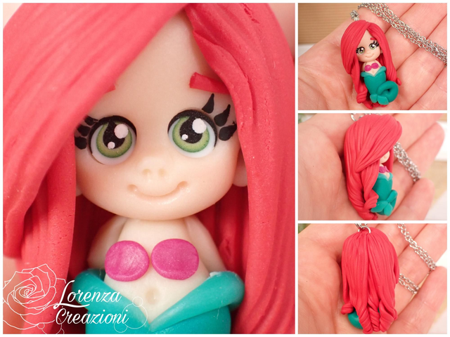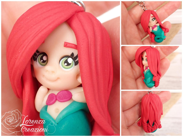 Collana e/o portachiavi modellato a mano artigianalmente, principessa Ariel, la sirenetta