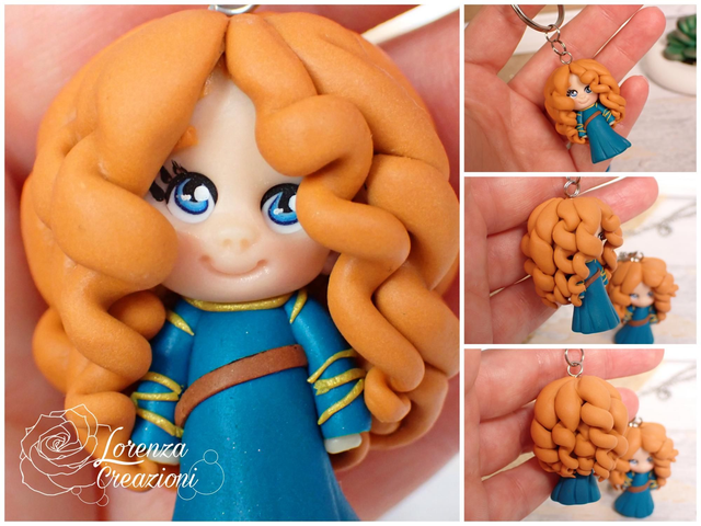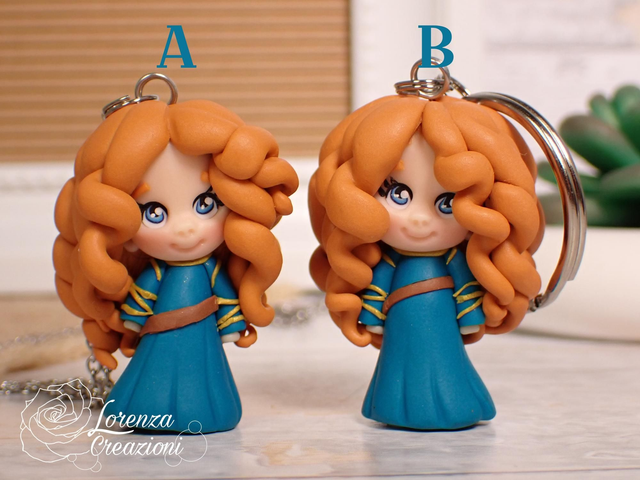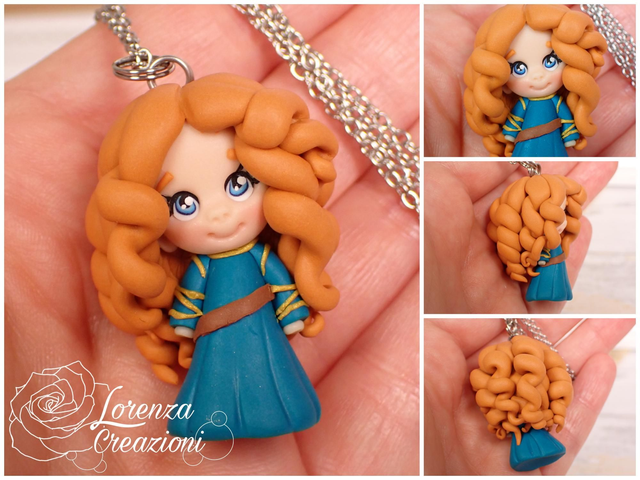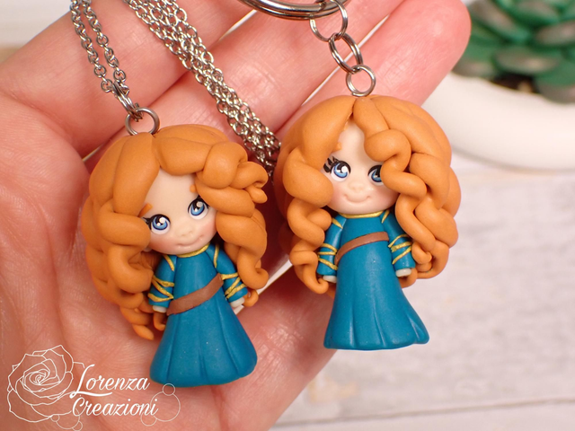 Collana e/o portachiavi modellato a mano artigianalmente, principessa Merida