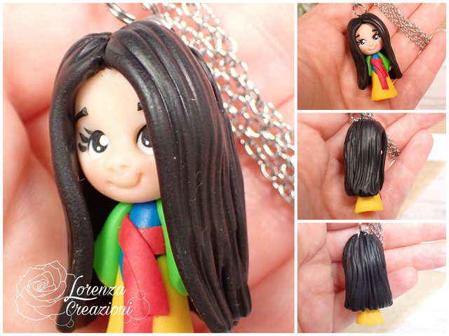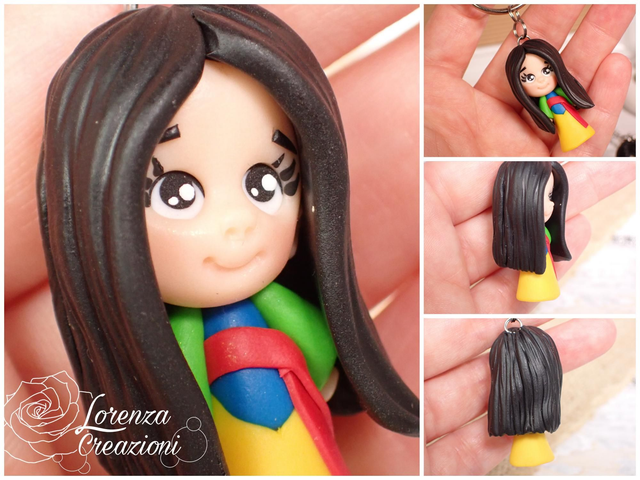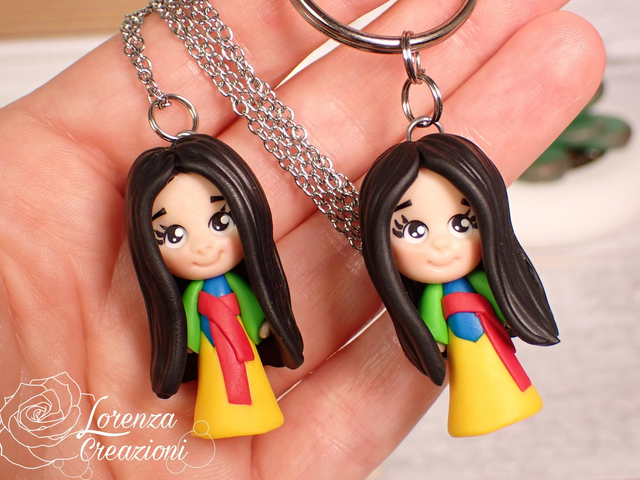 Collana e/o portachiavi modellato a mano artigianalmente, principessa Mulan