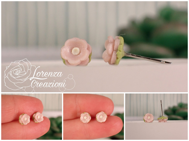 Orecchini artigianali modellati a mano in argilla polimerica (fimo). Floreali con piccoli fiori rosa tenue