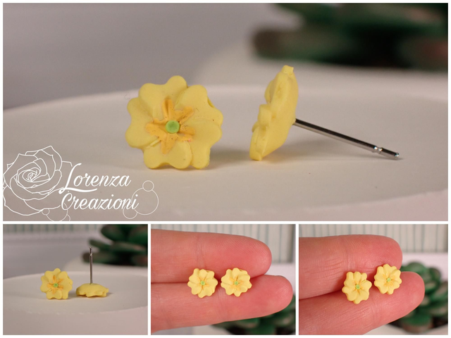 Orecchini artigianali modellati a mano in argilla polimerica (fimo). Floreali con primule