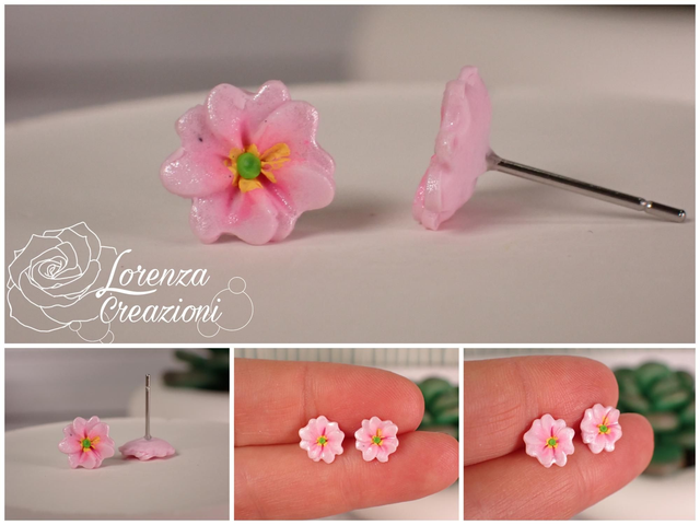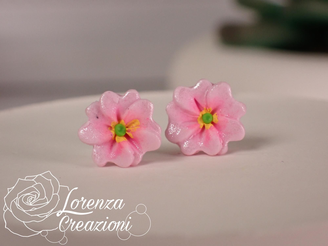 Orecchini artigianali modellati a mano in argilla polimerica (fimo). Floreali con primule