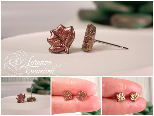 Orecchini artigianali modellati a mano in argilla polimerica (fimo). Floreali a forma di foglia.