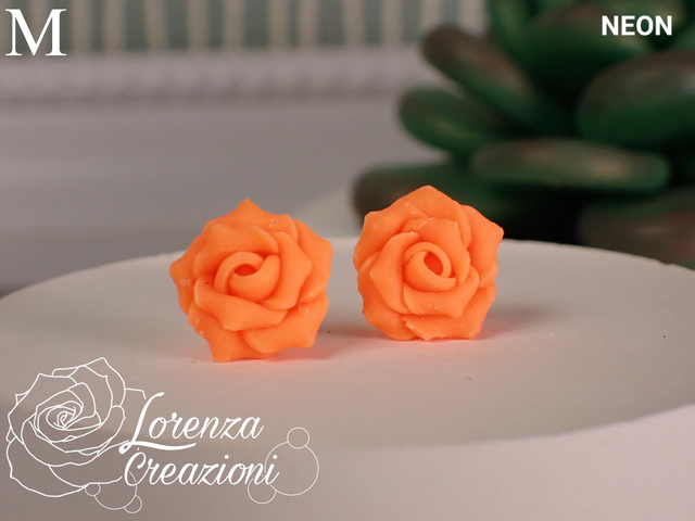 Ogni rosellina è modellata a mano e composta da 10 petali di argilla polimerica (fimo). Montate con minuteria in acciaio 316L, ipoallergenico e inossidabile.