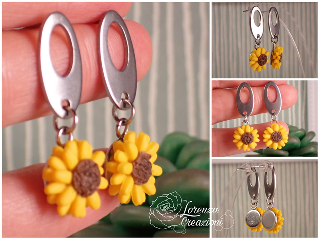 Orecchini artigianali modellati a mano in argilla polimerica (fimo). Floreali con girasoli.