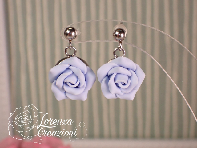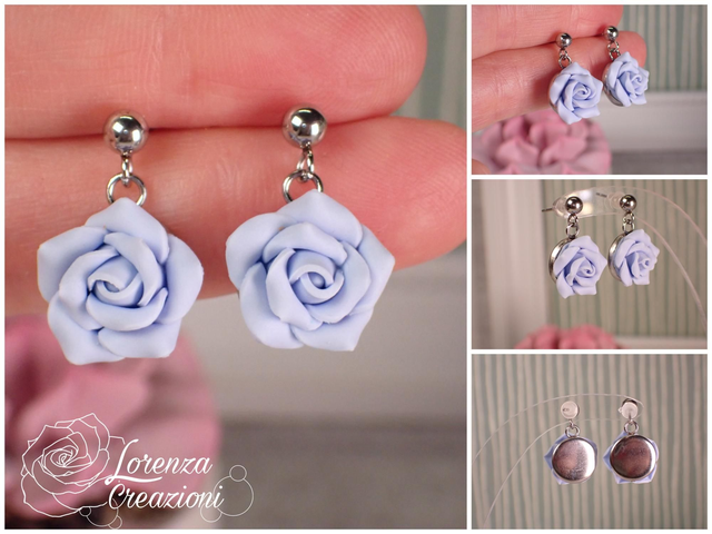 Ogni rosellina è modellata a mano e composta da 10 petali di argilla polimerica (fimo). Montate con minuteria in acciaio 316L, ipoallergenico e inossidabile.